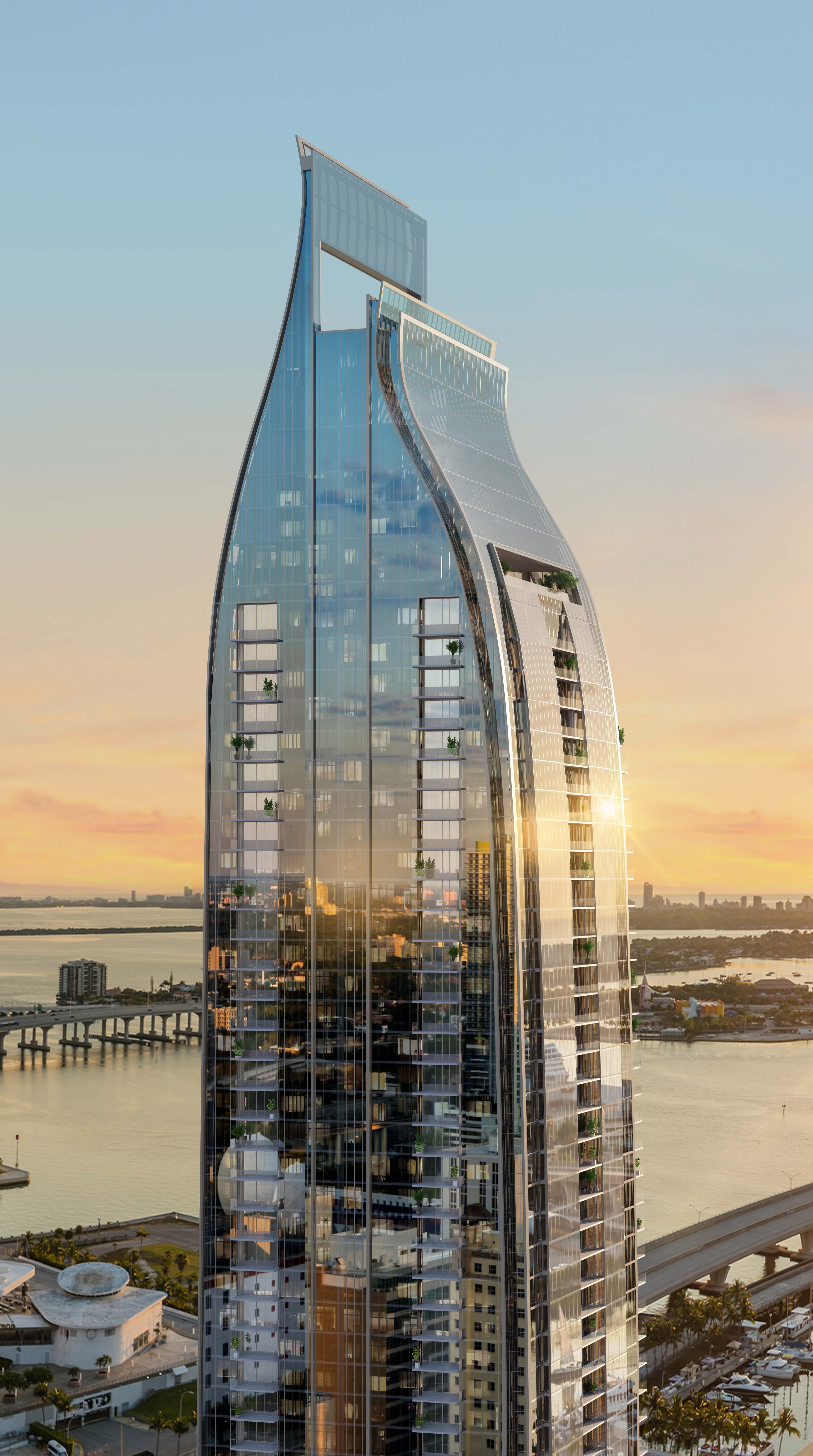 Positioned along Biscayne Boulevard with unobstructed views of Downtown, Biscayne Bay, Miami Beach, and the Atlantic Ocean, the tower introduces a new level of visibility — and distinction — to branded living.